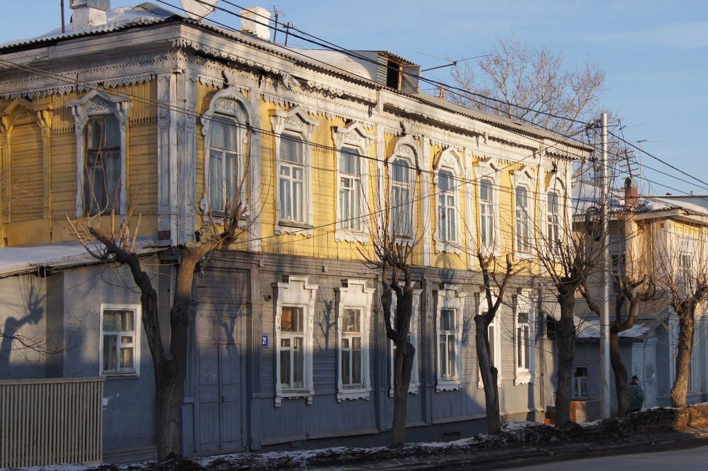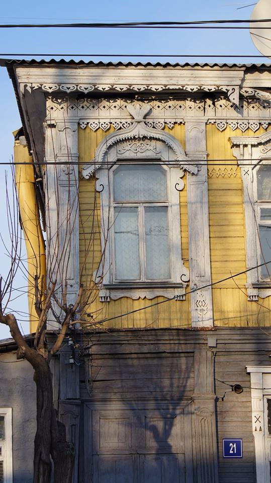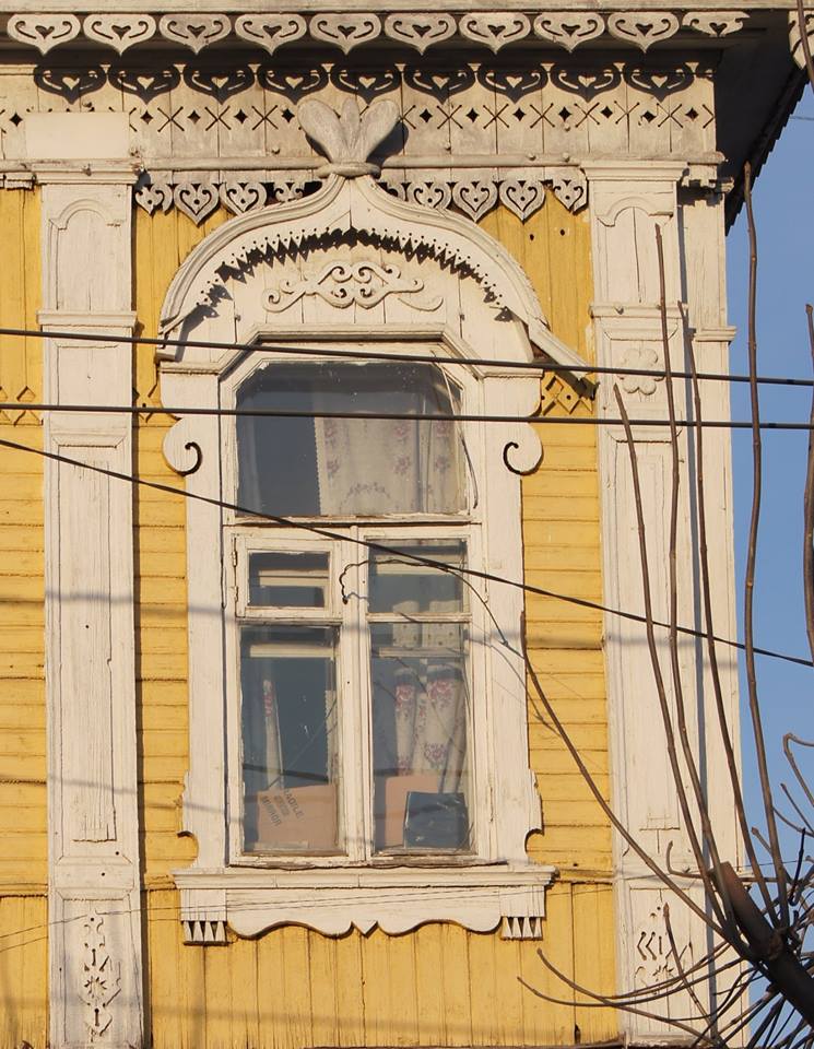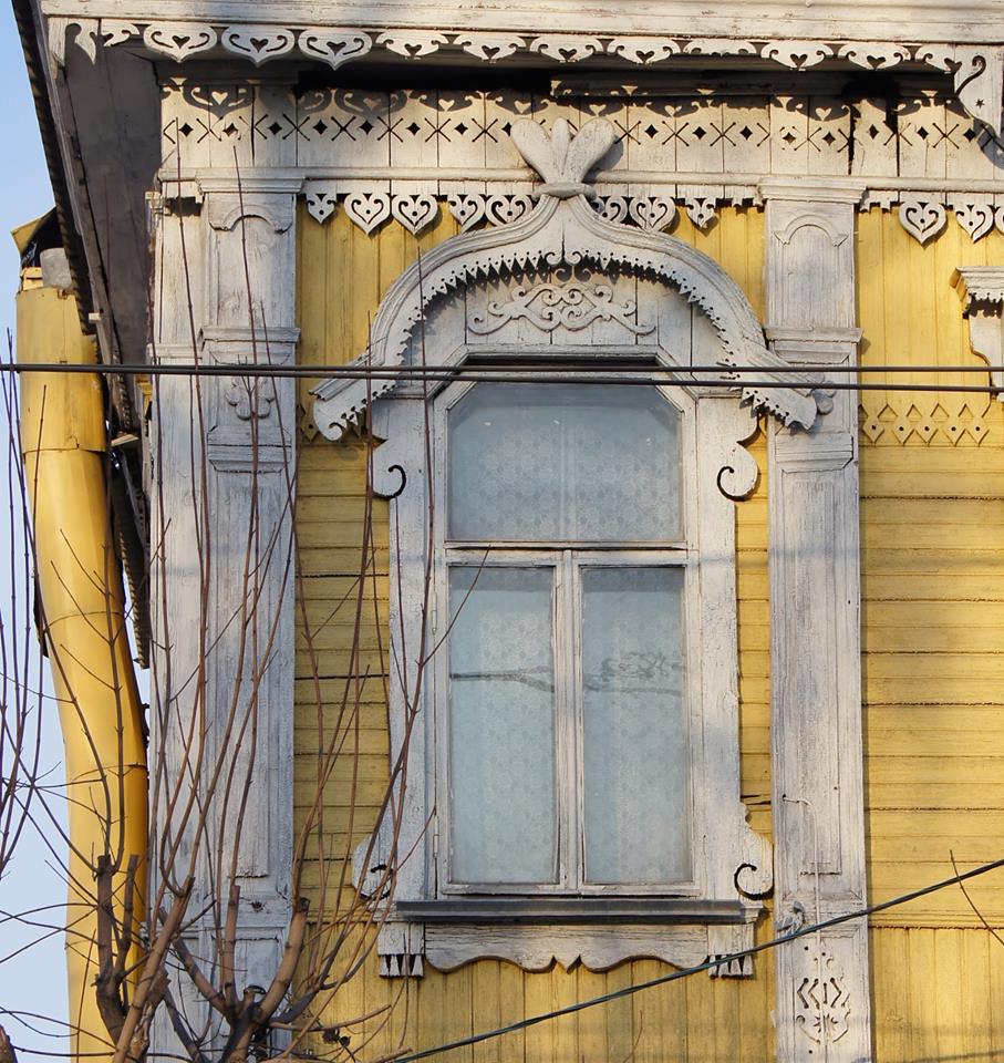 Многие, вероятно, его помнят. Сейчас это ул. Октябрьской Революции, 21. И сравните. Как его украшал этот навес над входом, ворота, элементы декора над фронтоном, балкон. Все исчезло. У дома еще сохранились очень красивые, единственные подобные в Уфе, наличники.
