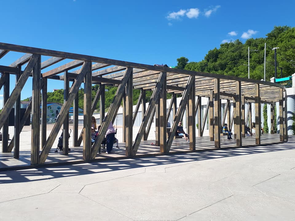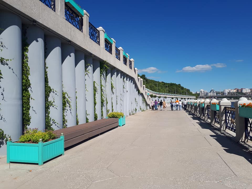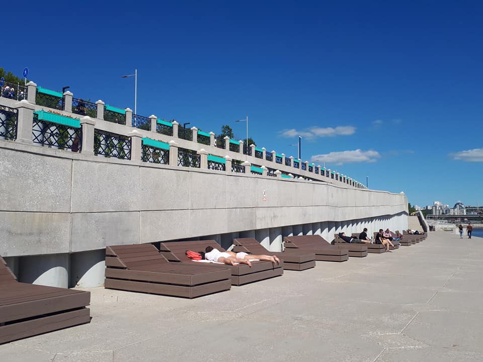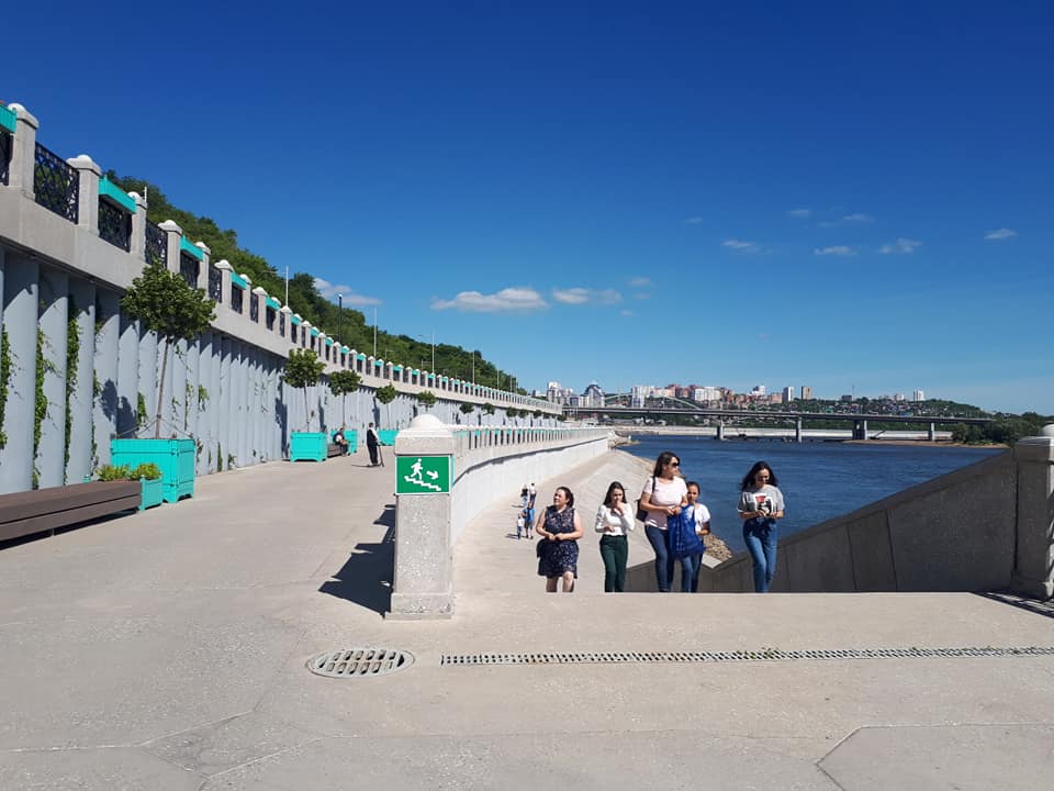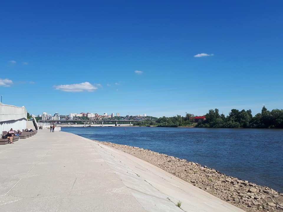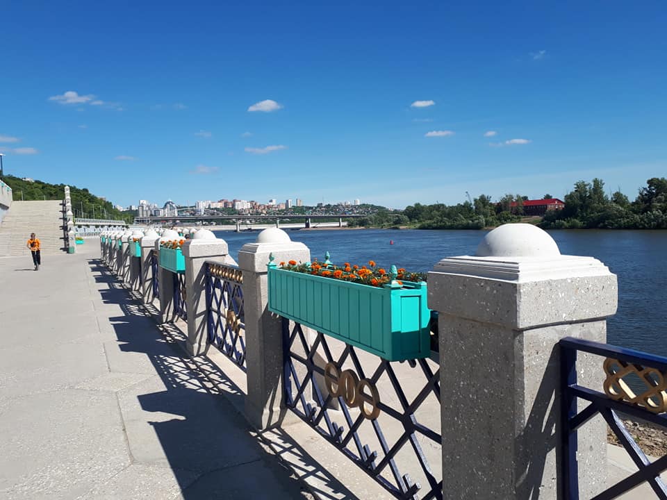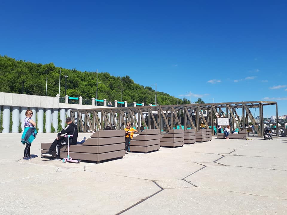 Вчера мы прогулялись по ней с подругой. Красивые виды, простор, есть места для отдыха, многие уфимцы на широких лежаках устраивают пикник, кто-то загарает топлесс.
