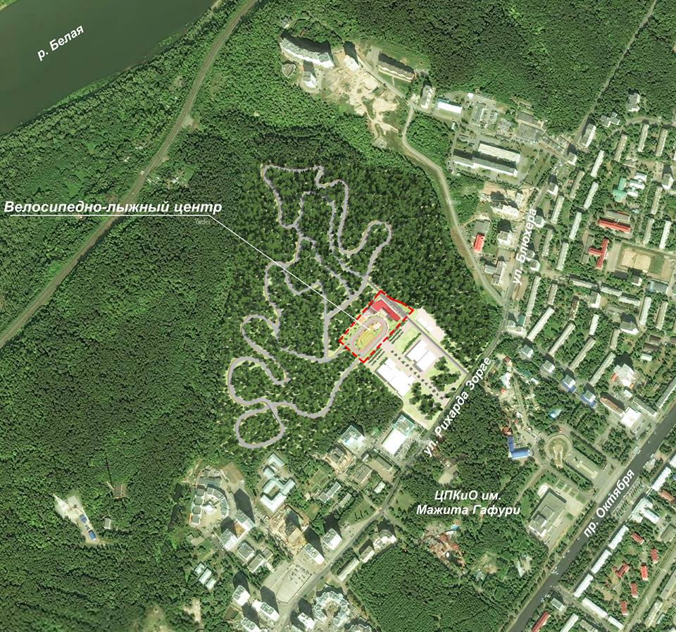 Второй важный проект — это Центр велосипедного спорта, где жители города могли бы без ограничений и не подвергания себя риску заниматься велосипедным спортом. На сегодняшний день тренироваться велосипедисты могут только на дорогах общего пользования или на СОК Биатлон, доступ куда ограничен. Это при том, что город Уфа обладает уникальными для городов России географическими особенностями, позволяющими создать интереснейшие универсальные велосипедно-лыжные трассы в самом центре города, чтобы ими с удобством могли пользоваться жители всех районов. В нижней части парка имени М.Гафури (улица Зорге / Блюхера) существует большая поляна с прилегающими уже подготовленными просеками, которые выполнялись под непостроенный лыжный стадион. Данная территория на сегодняшний день является по сути брошенной, загаженной, абсолютно неблагоустроенной.