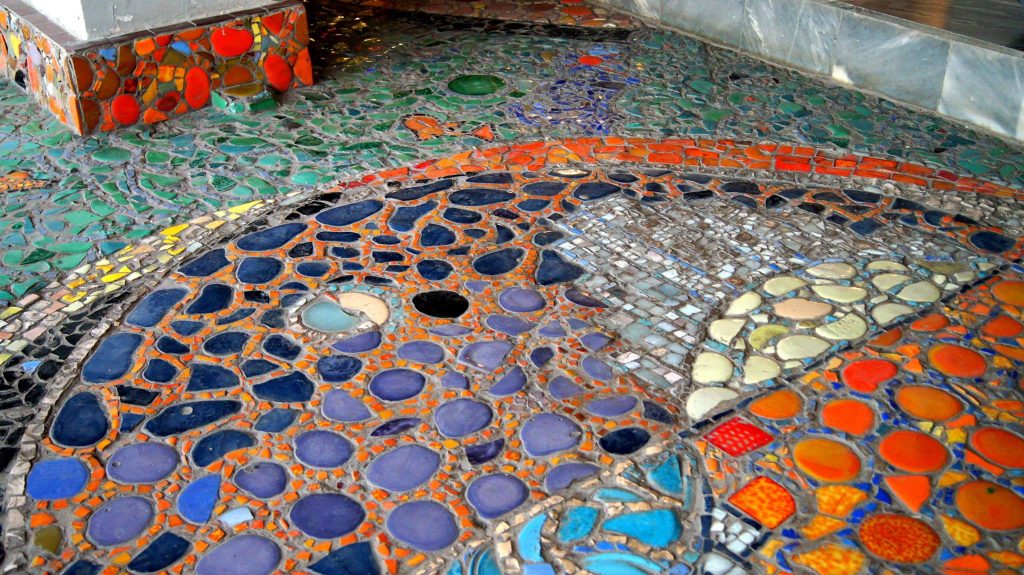 По тому как ровно лежит это коврик, у меня большое подозрение — не залили ли эти ценители прекрасного пол бассейна поверх мозаики бетоном?
