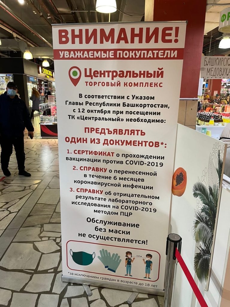 Расскажу, как выглядят ужесточения антиковидных мер в Уфе, в Центральном рынке. На входе стоит пугающий баннер с текстом, мол с 12 октября для посещения «Центрального» нужен либо сертификат о вакцинации, либо справка о том, что вы болели ковидом в последние 6 месяцев, либо справку ПЦР об отрицательном ковиде. Здорово я сейчас вам пересказал все то, что есть на первой фотке, да?)