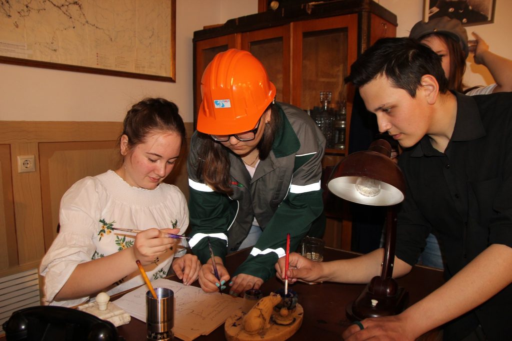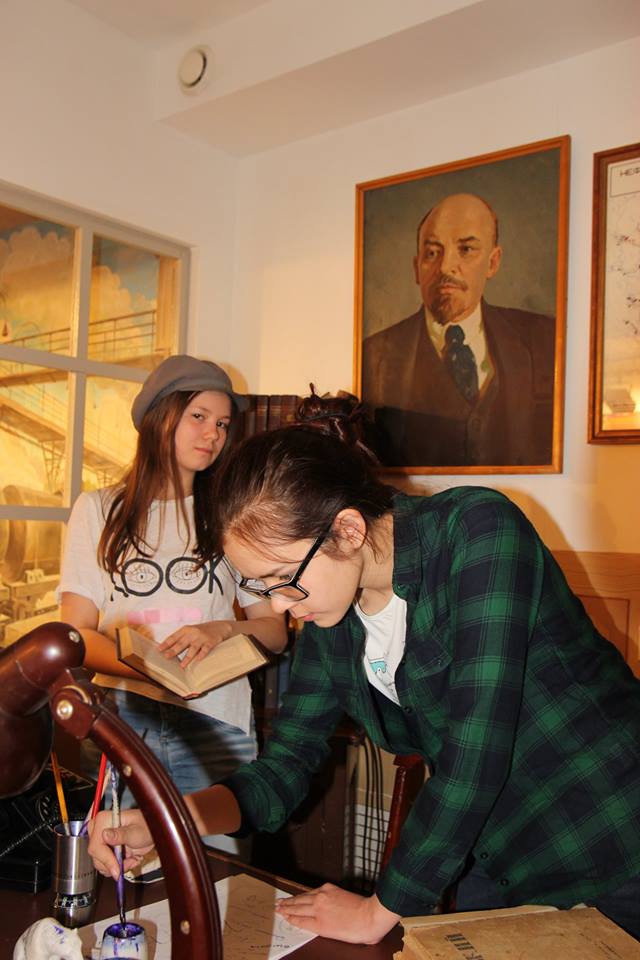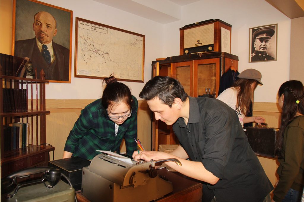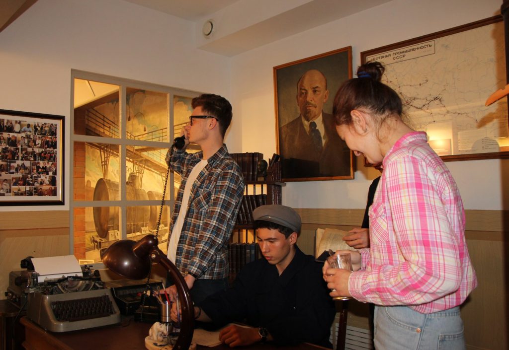Что, казалось бы, может быть интересного в профориентационной экскурсии для старшеклассников? В конце апреля мне довелось сопровождать группу учеников 9-11 классов, приехавших из города Дюртюли. Несомненно, для детей это был очень памятный, яркий, наполненный всевозможными впечатлениями день. Началась экскурсия в музее Уфимского государственного нефтяного технического университета. Расположен он в специальном помещении, на двух этажах, со штатом сотрудников. В нем представлена большая, разнотематическая экспозиция, и самое главное музей «контактный». Школьникам, например, не только показали стеклянные сосуды с различными видами нефти, но и дали понюхать, как пахнет настоящая нефть. В воссозданном кабинете начальника цеха 1940-1950-годов предложили надеть подлинный плащ, кепку той эпохи, посидеть за столом, взять в руки предметы. Подростки были в полном восторге. В чернильнице оказались даже чернила, и они с увлечением начали писать перьевой ручкой, постучали на пишущей машинке, перелистали томики собраний сочинений В.И.Ленина. Еще одним очень интересным местом оказалась комната студенческого общежития, наполненная подлинными вещами советских времен. Девочки с особым интересом просмотрели журналы мод.