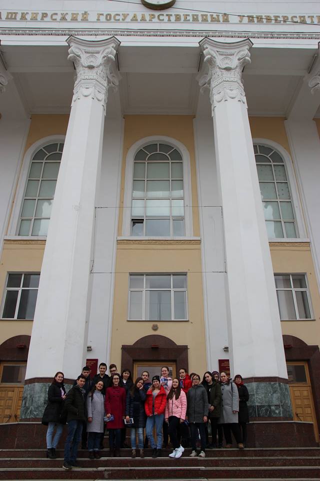 Следующим пунктом экскурсии был зоологический музей Башкирского государственного университета. А затем была экскурсия в Башкирскоий государственный педагогический университет им. М. Акмуллы. В кабинете кафедры астрономии школьникам дали возможность посмотреть в телескопы, в кабинете робототехники, продемонстрировали робота (созданного студентами), молниеносно собирающего кубик Рубика.