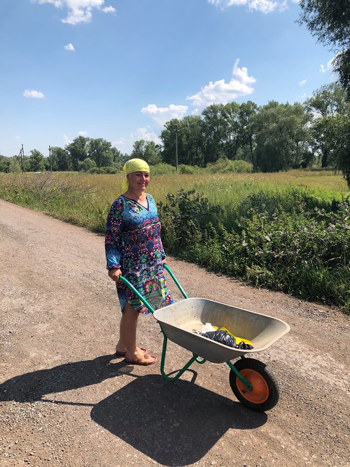 К нам подъехал Руслан, муж Юли, помочь перевозить мусор.