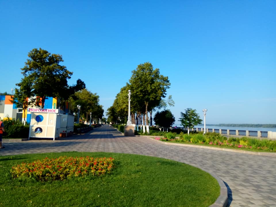 PS. Поскольку многие не верят, допишу. Мы вышли около 6 утра с вокзала, прошлись пешком до площади Куйбышева, потом — на набережную и на пляж. В городе пусто и чисто. Центр заметно ухоженный. Много работающих фонтанов, новых скверов, где ещё и трава не успела вырасти. Очень понравился сухой фонтан, оказывается, в нем так приятно в жару. Всяческих кафешек и пунктов продажи воды могло бы быть побольше. На пляже мы были в числе первых, поэтому выбрали свободную скамейку с навесом — их там немало. Раздевалки, краны для мытья ног — все имеется. Песок привозной — мелкий, и его много. Пляж бесплатный, что после Италии непривычно. Эта идея — песочный пляж сразу под набережной, мне кажется очень здравой. Уж получше бетонных плит, даже если на них будут лежаки.