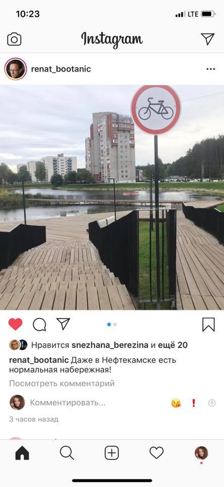 Вот, например, набережные в Белебее и Нефтекамске. Дружественное к человеку дерево, а не бетон, зелёные насаждения вокруг не пострадали, и, главное, есть лёгкий доступ к воде, а ещё сразу же предусмотрена различная инфраструктура, чтобы пространство было живым. В обоих случаях проекты делались и осуществлялись, насколько я понимаю, Институт развития городов Башкортостана совместно с администрацией городов и после обсуждения с жителями, Maria Kryzhevska, Александр Ильин, Aliya Aysina , верно?