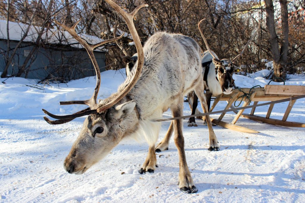 В начале января в столицу Башкирии завезли 4 северных оленя, 3 самца и самка, самка вроде как беременна, но это не точно. Проживают они между ТРЦ Планета и кинотеатром Искра. Называется все это «Оленья Ферма», зарабатывают ребята стандартно — запрягают северных оленей в упряжку и едут в парк лесоводов, там катают людей и фоткаются, за денежку.