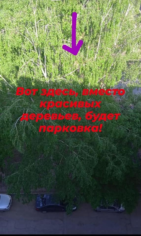 Получается, что под видом благоустройства двора, нам делают большую парковку перед подъездом N4 дома N167, вырубая все деревья, которым по 47 лет и устанавливают помойку. За нашими домами проходит грузовая шестиполосная дорога. Наши деревья во дворе — единственная возможность дышать очищенным нашими деревьями воздухом.