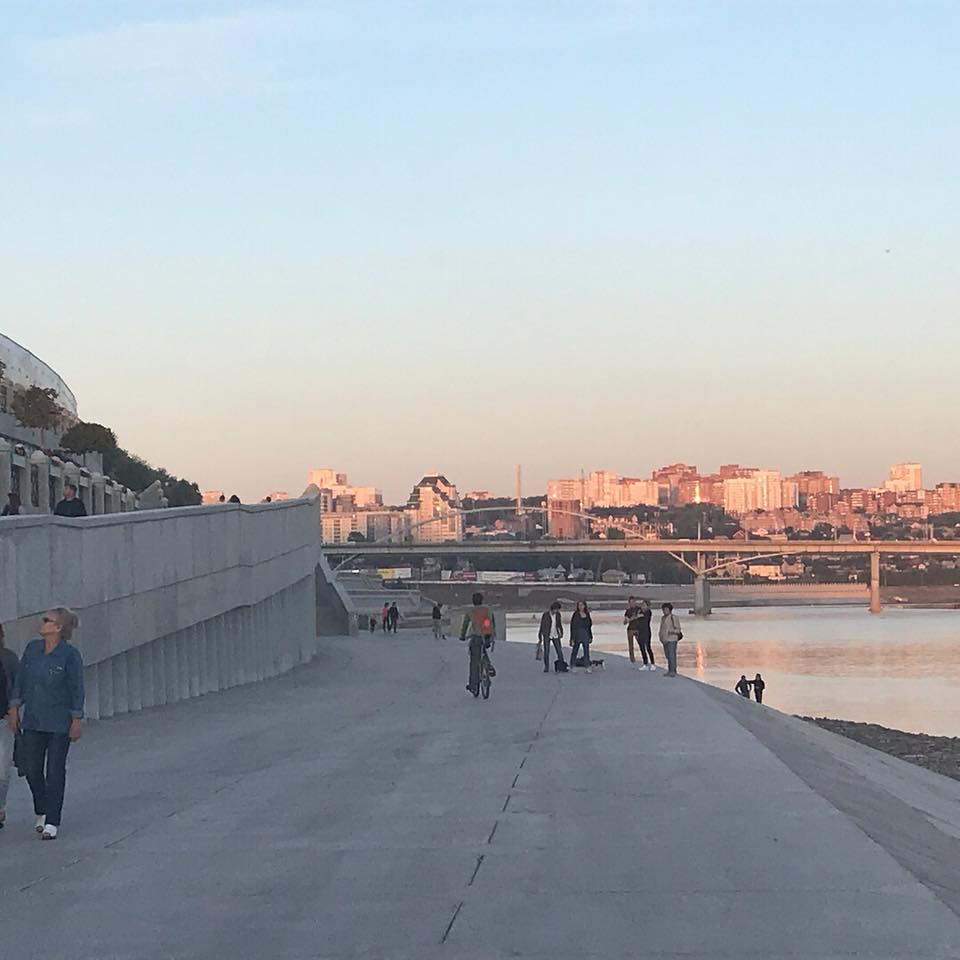 Вчера я спустя много лет наконец-то побывала на набережной… жесть конечно… на великах спустились вниз в районе монумента. Не стану отрицать наличие таблички проход запрещен, но любопытство было слишком велико) там пока сплошная стройка, все перекопано. В одном месте с великами продирались сквозь ветки в лесу) вот ближе к реке начинает прорисовываться набережная) что интересно, заканчивается она ограждением и люди, зачастую даже весьма почтенного возраста, бодро перелезают через ограду)) центром набережной я бы назвала юность. От нее отходит левая и правая набережная. Первые 100 метров левой набережной вы все могли наблюдать на фотографиях друзей и знакомых. Там стоят качельки (с очередью к ним) и дальше лежаки (хорошо хоть без очереди), из стен торчат цветочки и все мило и прекрасно) спустя эти 100 метров начинается серое ничто, но надо отметить, хотя бы чистое. На всей протяженности набережной можно выйти вниз к реке, посидеть на камешках). Эта сторона набережной полна молодежи всех возрастов, хипстеров и в принципе цивилизованной публики.