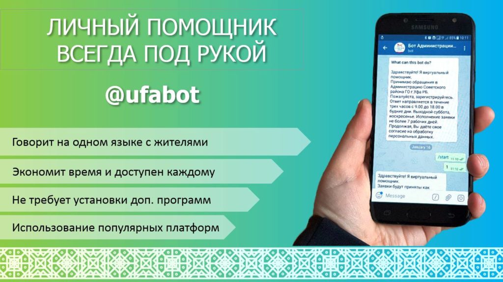 В начале года мы #советскийрайонуфы анонсировали запуск виртуального помощника — телеграмм бота Уфа Бот. Идея хорошая и рабочая, начали тестировать и собирать статистику. Но в силу известных обстоятельств пришлось отказаться от технического решения на основе телеграмма.
