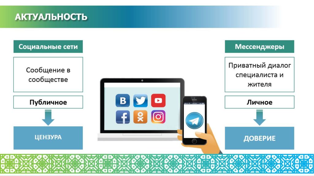 Урал Кильсенбаев , проанализировал ситуацию, а это он умеет хорошо. И поручил дальше развивать проект, ведь с жителями надо оперативно общаться. В качестве решения было выбрано создание чат ботов в мессенджерах и соцсетях. Процесс трудоемкий и не простой, ведь предполагается интеграция с CRM системой администрации.