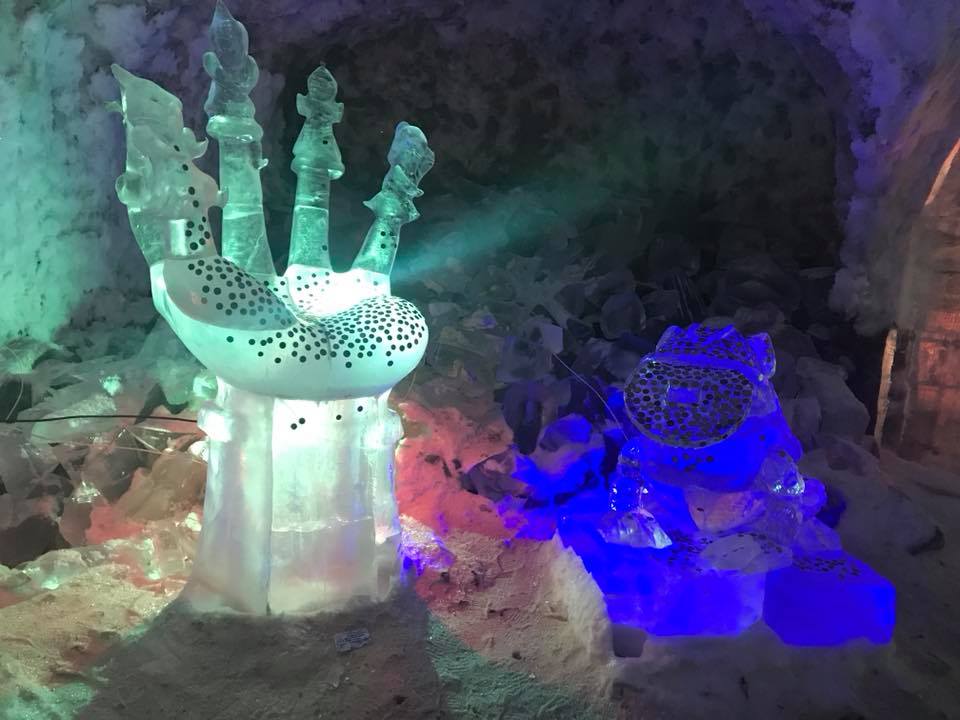 И куча всевозможных фигур изо льда) фигуры персонпжей из якутского эпоса, мульта ледниковый период и даже железный трон из игры престолов) а еще можно покататься с ледяной горки, побродить по лабиринту минотавра и поиграть в керлинг))