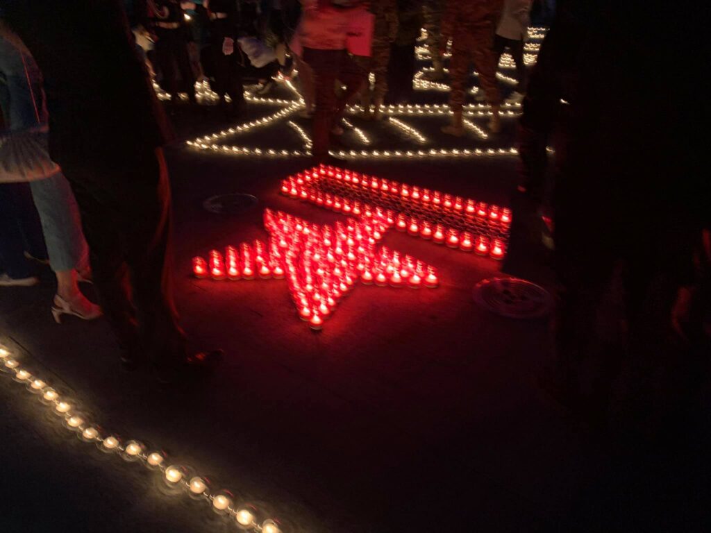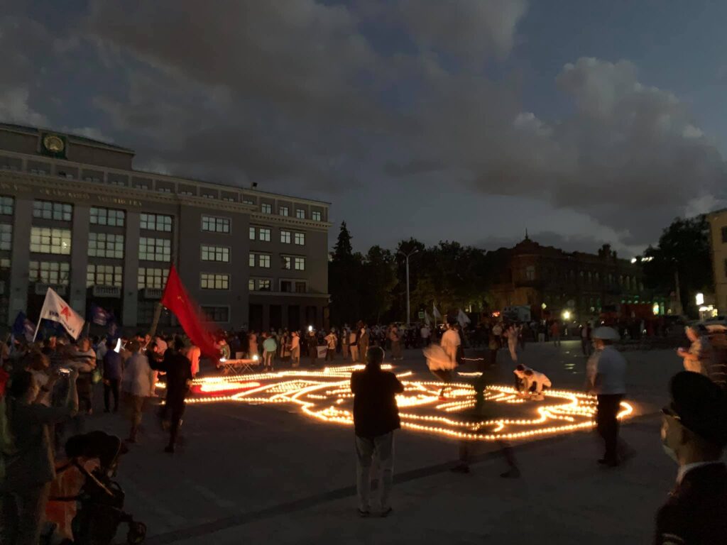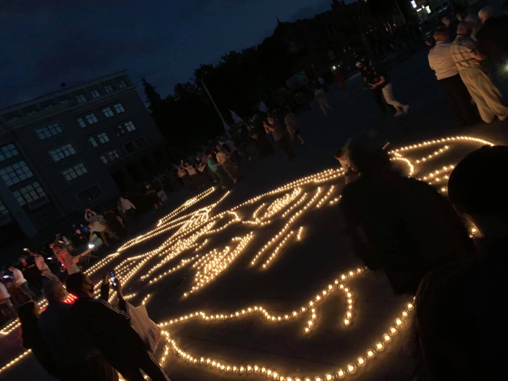 Встретил самую короткую в году и самую печальную ночь в истории нашей Родины на уфимской Красной площади — Советской площади, зажигая каминными спичками вслед за Радий Хабиров несколько из 1418 свечей, которыми был выложен портрет героя России генерал-майора Минигали Шаймуратова.
