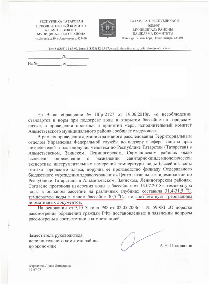 Вчера пришел ответ от исполкома Альметьевского муниципального района.