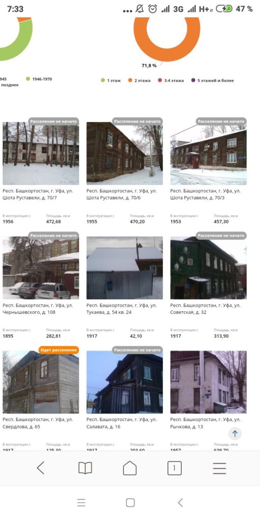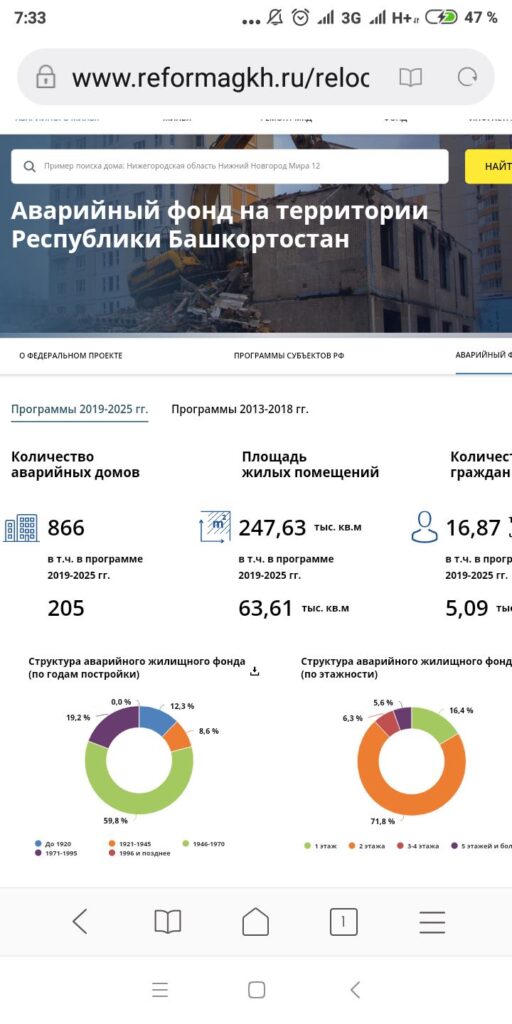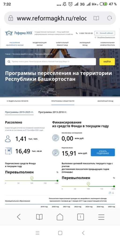 И в подтверждении вышеуказанного публикую скрины с сайта Фонда ЖКХ России, где аварийные бараки по Шота Руставели стоят прямо первыми в новой программе расселения по г.Уфа. Из примечательного, в программе указано, что на данный момент расселено 0 жителей барака по Шота Руставели, д.70/7.