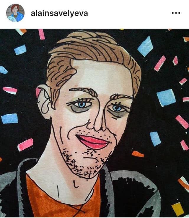 Я обещал ночью продолжить цикл лекций о творчестве Алён Савельевой, но, как обычно, проспал. So. Что вы видите. На втором слайде — мой портрет, написанный в 2018 году (находится в коллекции авторки). Вообще-то он был в полный рост, но даже тут видно, что я одет, поэтому надолго не будем останавливаться. Те, кто хорошо меня знает, в курсе, что отрешённый взгляд при вежливой улыбке — моё типичное состояние, а Алён видела меня ровно минуту, вот что значит художник.
