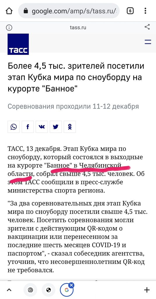 Я правда, очень уважаю и люблю курорт Банное. И тех людей, кто работает в ГЛЦ , кто сделал такое классное соревнование, этап кубок мира по сноуборду.Но ведь есть фактчекинг, у СМИ, нет?Даже если это главное информационное агентство России.