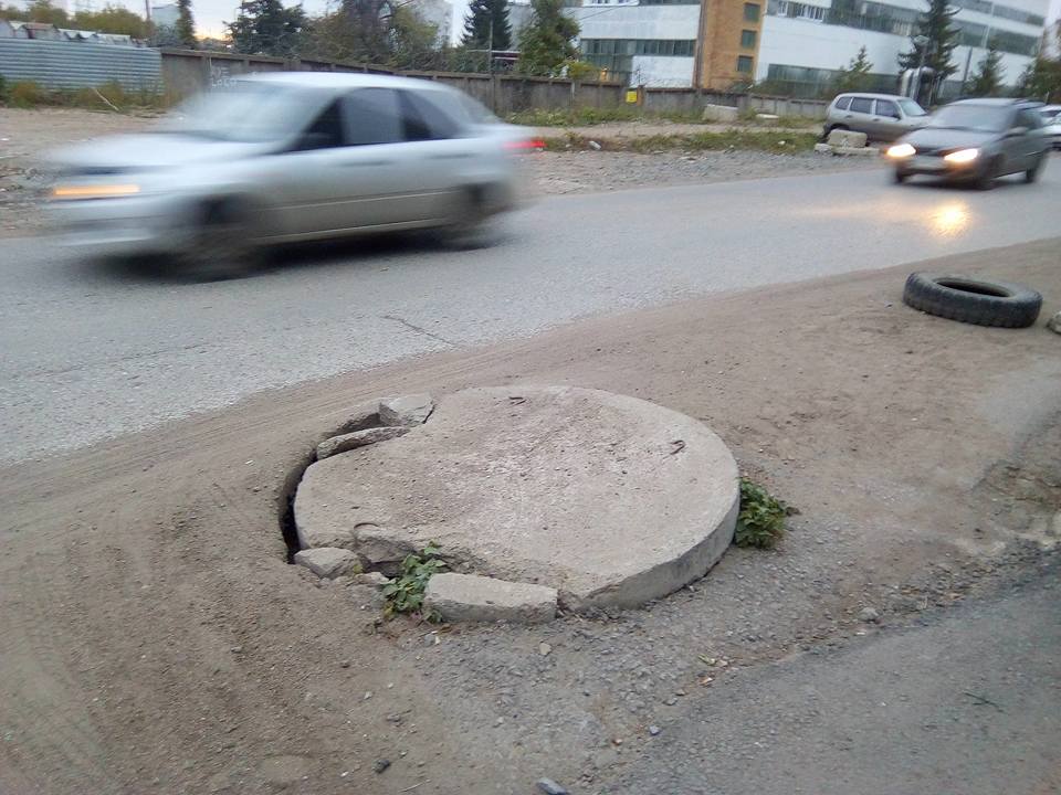 Ямы и колодцы на дорогах Уфы