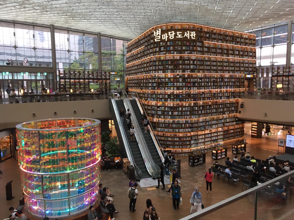 Кратко — о том, как мы тут (разношерстная, но дружная делегация от «Лицея» и «Большой книги») выживаем. На первом фото — локация, возможно, знакомая вам по инстаграмам участников Сеульской книжной ярмарки 2018, но, между прочим, эта инсталляция в COEX не имеет никакого отношения к профилю ярмарки. Это даже не инсталляция, а в меру реальное совмещение форматов молла и библиотеки, если я правильно понял. На втором фото вы видите не траурный зал Митинского крематория, хотя очень похоже, и не мемориал жертвам, а приветствие правительства и др участникам книжной ярмарки. Все дело в менталитете корейцев, для которых венок это совсем не то, что для нас. Так что «Утиная охота» Вампилова могла бы здесь получить новое прочтение. В окне между мероприятиями ярмарки мы с Кристиной Гептинг (лауреатом «Лицея» 2017) даже сходили в ближайший — обнаруженный на офлайн картах — парк. Входные билеты по 1000 вон (около 56 рублей) стали неожиданностью, но, повстречав на аллеях вдохновленных природой горожан, мы поняли: для жителя корейского мегаполиса пребывание в экзотическом месте типа леса — ценность, за которую надо платить. Некоторые не расстаются с медицинскими масками даже здесь, а на знаменитые экологические проблемы Сеула намекает странная хмарь — вроде, и не пасмурно, и не солнечно, и все время ошибочно опасаешься, что вот-вот пойдет дождь. Наконец, мы не могли обойти традиционные корейские забегаловки, где прямо на столе — газовые конфорки, и прямо у тебя на столе варится суп. На фото на раздаче депутат Госдумы (как в бородатом анекдоте «Не знаю, кто это, но шофер у него — …»). Пятое фото, на котором я запечатлел для вас работницу ночных улиц, не вошло из-за горизонтальности, смазанности (фокуса) и общего этического контекста. Мы долго гадали, не ошиблись ли мы в определении профессии загадочной прохожей, но она никак не переходила дорогу, да и рекламы сексуальных услуг, разбросанные на всех улицах, будто вражеские листовки с самолета, кагбэ намекали.